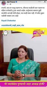 रुपाली, स्वतःला घडवू पाहणाऱ्या, जीवनात काहीतरी करू पाहणाऱ्या महिला वर्गासाठी तू एक आदर्श आहेस. कर्तृत्वाच्या बळावर तुझी कारकीर्द आणखी मोठी होइल, यात काही शंका नाही. मी सदैव तुझ्या पाठीशी भक्कम उभा आहे ! असे अजित पवार यांनी या पोस्टमध्ये म्हटले होते.